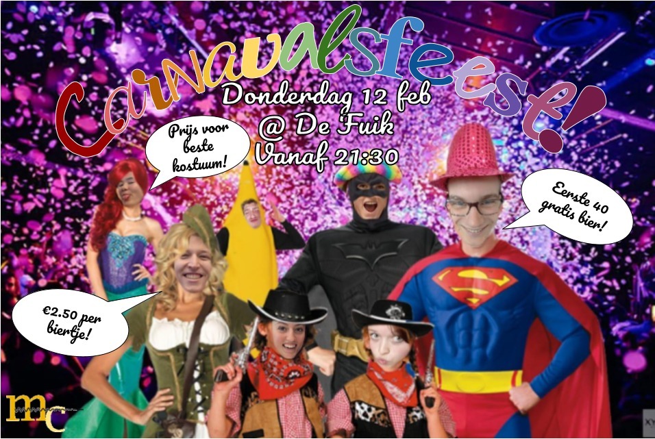 Ben jij net als wij nu al klaar met je studiewerk, en kan je niet wachten om weer lekker los te gaan met de carnaval? Dan ben je bij de Fuik aan het juiste adres! De donderdag voor carnaval zullen we Nijmegen laten zien wat we van carnaval weten!