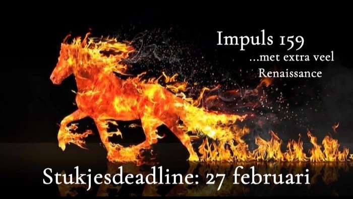 tot2026 gaat écht jouw jaar zijn! Het jaar van het vuur paard in de Chinese astrologie! Dat moet natuurlijk gevierd worden en dat gaan we doen met de Impuls. De dag na het Chinese nieuwjaar: 18 februari houden we in de pauze een schrijfmiddag voor Impuls 159. Deze zal het thema "New Year, New Marie. Met extra veel Renaissance" hebben.